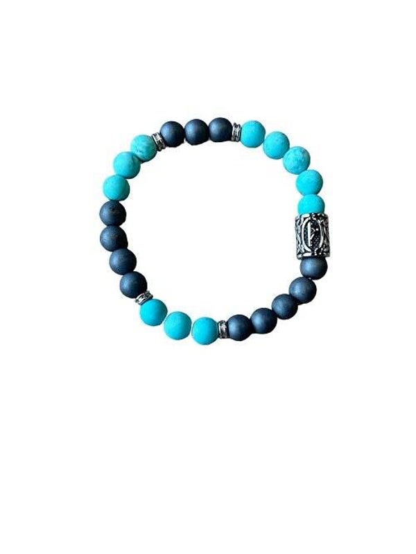 Heren armband Wunjo, van natuursteen matte Turquoise en matte Hematiet met Viking kraal.